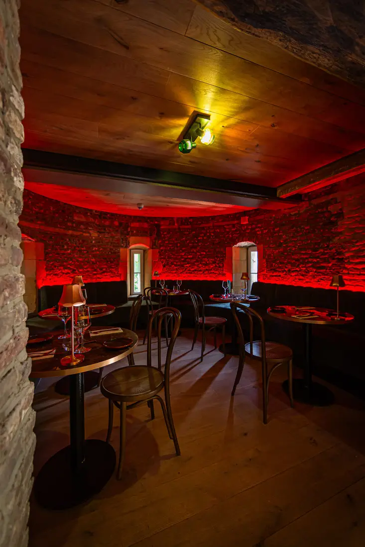 In deze stijlvolle bistro – gevestigd in het oudste deel van het kasteel – komt klassieke charme samen met moderne smaken. De menukaart wisselt met de seizoenen, met verrassende gerechten die altijd zijn bereid met oog voor kwaliteit en finesse. Of je nu kiest voor een romantisch diner bij zonsondergang of een lange zomeravond op het terras: de sfeer is warm, de bediening persoonlijk en de beleving onvergetelijk.